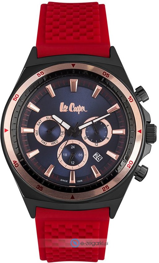Męski zegarek Lee Cooper LC06830.698 to zegarek, który dzięki swemu wzornictwu zawsze będzie prezentował się dobrze. Charakterystyczny wygląd czasomierza osiągnięto m.in. poprzez tarczę w kolorze granatowym. Zaprezentowana metodą analogową aktualna godzina jest czytelna i szybka do sprawdzenia. Koperta jest ozdobiona kolorem czarnym szeroka jest na 44 mm - posiada okrągły kształt.
