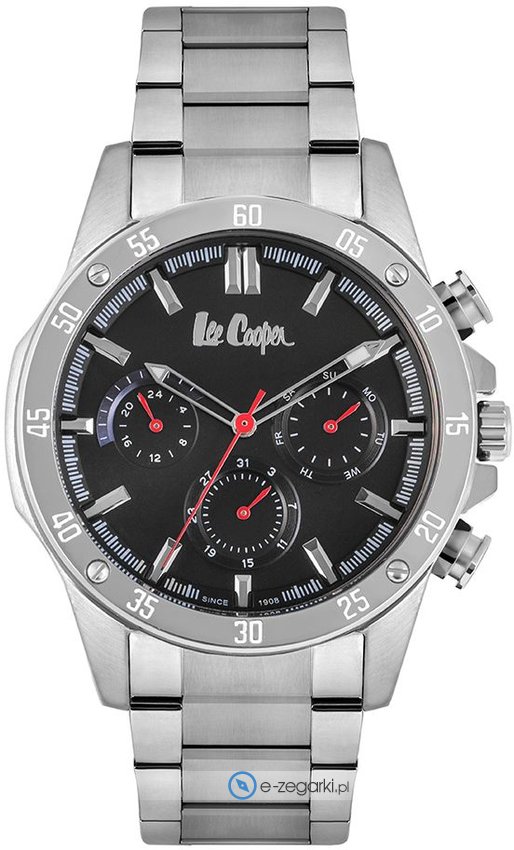 Model LC06837.350 marki Lee Cooper to elegancki zegarek naręczny męski, który jest wyposażony w ciekawe rozwiązania oraz funkcje. Charakter zapewnia wysokiej jakości cyferblat w kolorze czarnym. Zegarek ten prezentuje aktualny czas w formacie analogowym dzięki czemu odczyt jest intuicyjny. Koperta w barwach koloru stalowego szeroka jest na 44 mm - ma okrągły kształt.