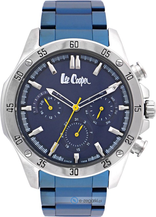 Zegarek męski LC06837.390 marki Lee Cooper to dobra propozycja dla osób ceniących sobie dbałość o detale jak również bezproblemowe działanie mechanizmów. Stylu nadaje wysokiej klasy cyferblat w kolorze granatowym. Zegarek ten pokazuje aktualny czas w formacie analogowym dzięki czemu odczyt jest bezproblemowy. Koperta w barwach koloru stalowego szeroka jest na 44 mm - w kształcie okrągłym.