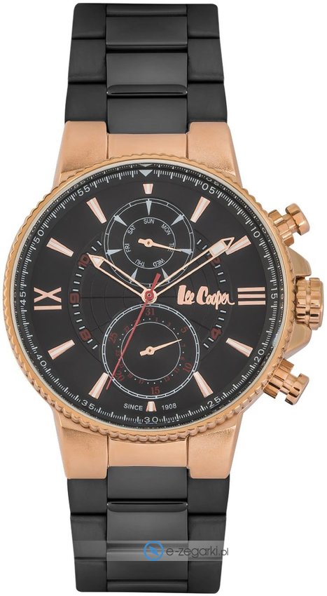 Model LC06842.450 marki Lee Cooper to stylowy zegarek naręczny męski, który jest wyposażony w pomysłowe rozwiązania i funkcje. Niestereotypowy wygląd czasomierza uzyskano dzięki tarczy w kolorze czarnym. Koperta szeroka jest na 44 mm - wyróżnia się okrągłym kształtem.