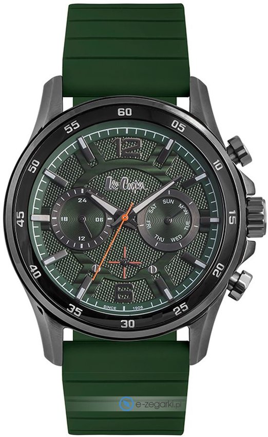 Zegarek LC06844.675 posiada kwarcowy mechanizm zasilany klasyczną baterią. Pasek koloru zielonego zrobiony jest z wysokiej jakości tworzywa sztucznego.