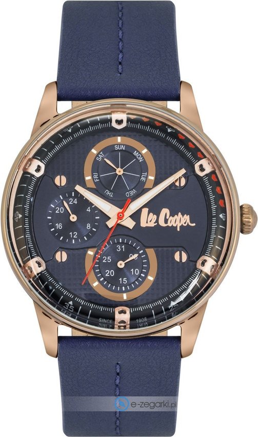 Model LC06855.499 marki Lee Cooper to elegancki zegarek naręczny męski, który wyposażono w pomysłowe rozwiązania oraz funkcje. Ciekawą budowę czasomierza osiągnięto dzięki tarczy w kolorze granatowym. Koperta szeroka jest na 45 mm - wyróżnia się okrągłym kształtem.