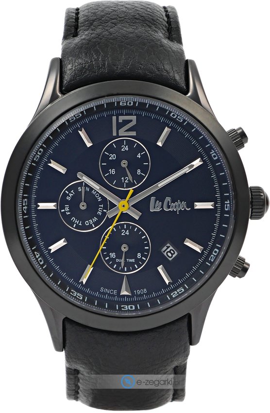 Męski zegarek Lee Cooper LC06908.651 to zegarek, który dzięki swemu wzornictwu zawsze będzie prezentował się dobrze. Niebanalną stylistykę czasomierza osiągnięto dzięki tarczy w kolorze czarnym. Godzina pokazywana jest w sposób analogowy co bez trudu pozwala ją odczytać. Koperta została pokryta kolorem czarnym szeroka jest na 43 mm - ma okrągły kształt.