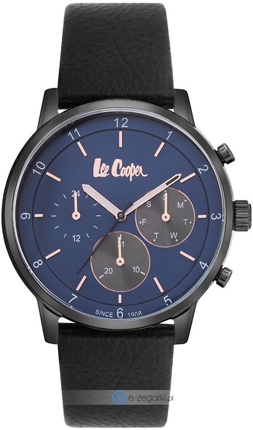 Zegarek męski LC06912.099 marki Lee Cooper to stylowe połączenie funkcjonalności oraz ciekawego designu. Nieschematyczny wygląd zegarka osiągnięto m.in. poprzez cyferblat w kolorze granatowym. Zegarek ten prezentuje aktualny czas w formacie analogowym dzięki temu odczyt jest bardzo łatwy. Koperta w barwach koloru czarnego szeroka jest na 44 mm - cechuje się okrągłym kształtem.