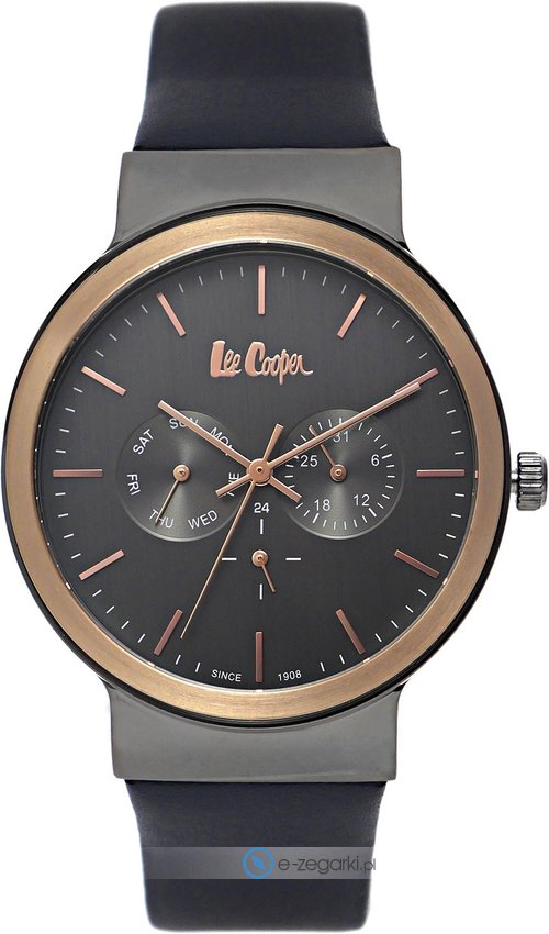 Model LC06915.069 marki Lee Cooper to stylowy zegarek naręczny męski, który jest wyposażony w ciekawe rozwiązania oraz funkcje. Ciekawy wygląd zegarka uzyskano także dzięki tarczy w kolorze szarym. Aktualna godzina pokazywana jest w sposób analogowy co intuicyjnie pozwala ją odczytać. Koperta szeroka jest na 41 mm - posiada okrągły kształt.