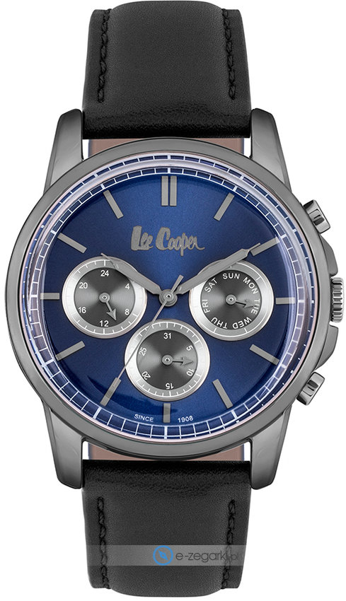 Model LC06921.091 marki Lee Cooper to elegancki zegarek naręczny męski, który posiada ciekawe rozwiązania i funkcje. Niestereotypowy wygląd zegarka osiągnięto również dzięki tarczy w kolorze granatowym. Zaprezentowana metodą analogową aktualna godzina jest czytelna i szybka do sprawdzenia. Koperta w odcieniach koloru stalowego szeroka jest na 43 mm - posiada okrągły kształt.