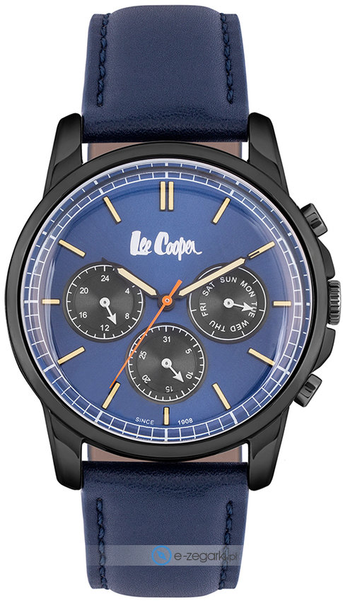 Męski zegarek Lee Cooper LC06921.699 to zegarek, który dzięki swemu wzornictwu zawsze będzie prezentował się dobrze. Charakter zapewnia wysokiej klasy cyferblat w kolorze granatowym. Pokazana metodą analogową bieżąca godzina jest czytelna i łatwa do sprawdzenia. Koperta jest ozdobiona kolorem czarnym szeroka jest na 43 mm - charakteryzuje się okrągłym kształtem.