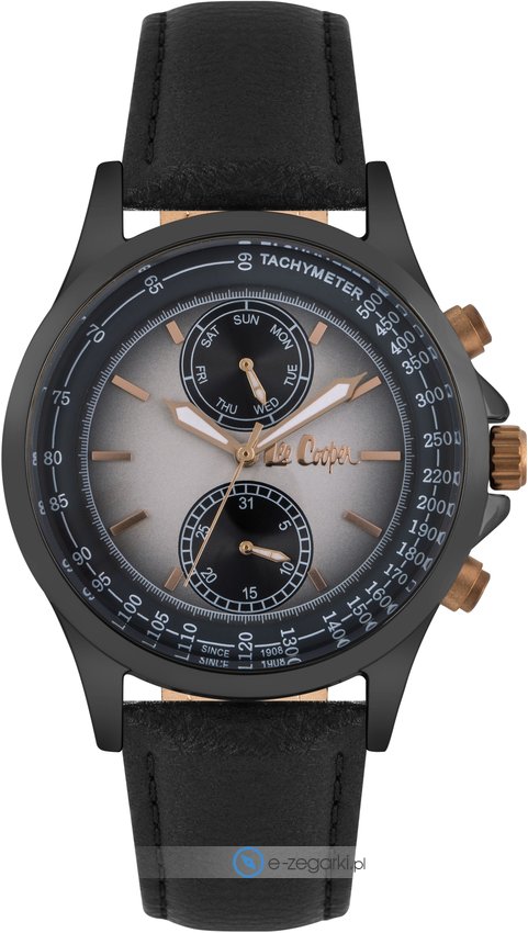 Model LC06923.661 marki Lee Cooper to elegancki zegarek naręczny męski, który wyposażono w ciekawe rozwiązania i funkcje. Niestereotypowy wygląd czasomierza osiągnięto także dzięki tarczy w kolorze szarym. Godzina przedstawiona jest w sposób analogowy co bez trudu pozwala ją odczytać. Koperta w barwach koloru czarnego szeroka jest na 44 mm - charakteryzuje się okrągłym kształtem.