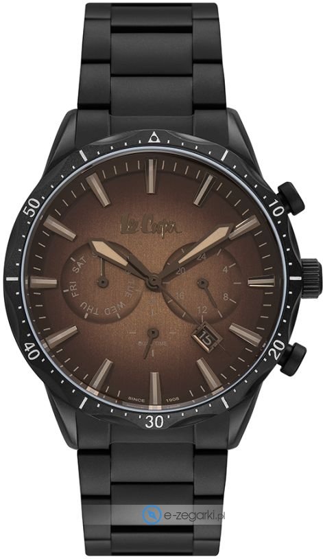 Zegarek męski LC06952.640 marki Lee Cooper to idealna pozycja dla osób ceniących sobie dbałość o detale jak również bezproblemowe działanie mechanizmów. Niebanalną budowę zegarka osiągnięto z pomocą tarczy w kolorze brązowym. Aktualna godzina zaprezentowana jest w sposób analogowy co niezmiernie łatwo pozwala ją odczytać. Koperta jest w kolorze czarnym szeroka jest na 44 mm - w kształcie okrągłym.