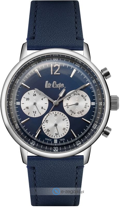 Zegarek męski LC06953.399 marki Lee Cooper to dobre połączenie funkcjonalności a także modnego designu. Charakterystyczną konstrukcję czasomierza osiągnięto z pomocą tarczy w kolorze granatowym. Pokazana metodą analogową bieżąca godzina jest czytelna i szybka do odczytania. Koperta w odcieniach koloru srebrnego szeroka jest na 43 mm - ma okrągły kształt.
