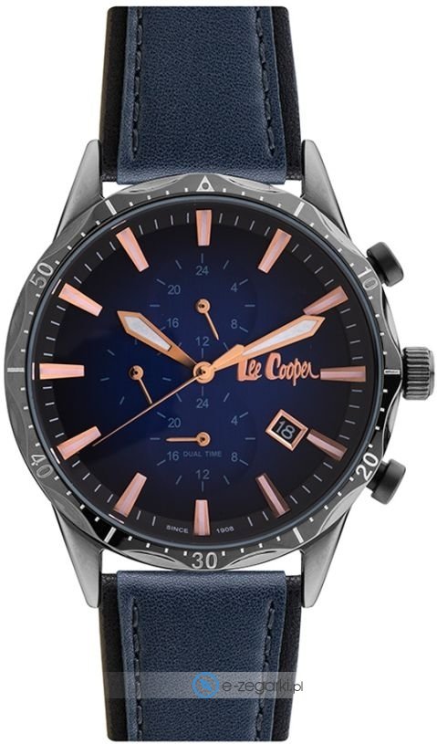 Model LC06957.099 marki Lee Cooper to elegancki zegarek naręczny męski, który wyposażono w pomysłowe rozwiązania oraz funkcje. Niebanalną konstrukcję czasomierza uzyskano z pomocą tarczy w kolorze granatowym. Pokazana metodą analogową aktualna godzina jest czytelna i szybka do sprawdzenia. Koperta jest pokryta kolorem czarnym szeroka jest na 44 mm - ma okrągły kształt.