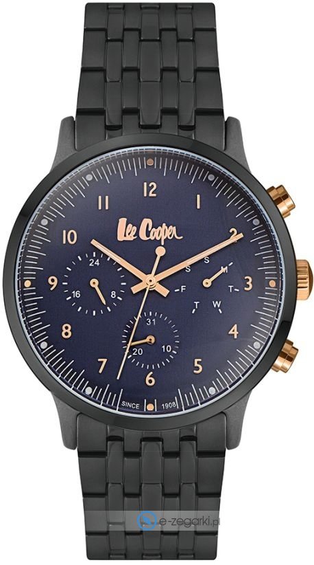 Zegarek męski LC06969.690 marki Lee Cooper to dobra propozycja dla osób ceniących sobie dbałość o szczegóły oraz bezproblemowe zachowanie mechanizmów. Ciekawy wygląd czasomierza uzyskano również dzięki tarczy w kolorze granatowym. Aktualna godzina zaprezentowana jest w sposób analogowy co bez trudu pozwala ją odczytać. Koperta jest w kolorze czarnym szeroka jest na 44 mm - w kształcie okrągłym.