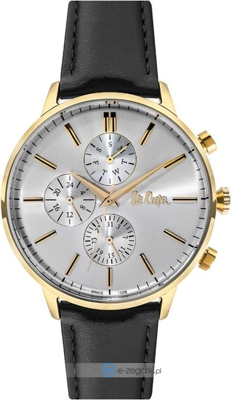 Model LC06970.231 marki Lee Cooper to stylowy zegarek naręczny męski, który posiada pomysłowe rozwiązania i funkcje. Wysokiej trwałości cyferblat zegarka pokryto szarym kolorem. Aktualna godzina zaprezentowana jest w sposób analogowy co intuicyjnie pozwala ją odczytać. Koperta w odcieniach koloru złotego szeroka jest na 45 mm - w kształcie okrągłym.