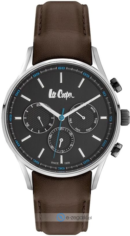 Zegarek męski LC06971.052 marki Lee Cooper to idealna propozycja dla ludzi ceniących sobie dbałość o detale a także bezawaryjne funkcjonowanie mechanizmów. Charakterystyczny wygląd zegarka uzyskano również dzięki tarczy w kolorze czarnym. Zaprezentowana metodą analogową aktualna godzina jest czytelna i szybka do sprawdzenia. Koperta jest pokryta kolorem stalowym szeroka jest na 44 mm - ma okrągły kształt.