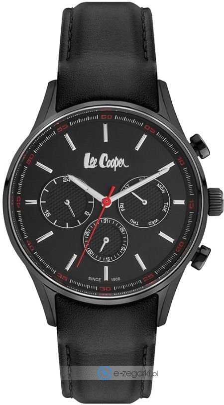 Model LC06971.651 marki Lee Cooper to elegancki zegarek naręczny męski, który jest wyposażony w pomysłowe rozwiązania oraz funkcje. Charakterystyczną budowę czasomierza osiągnięto dzięki tarczy w kolorze czarnym. Zegarek ten pokazuje aktualny czas w formacie analogowym dzięki temu odczyt jest intuicyjny. Koperta została pokryta kolorem czarnym szeroka jest na 44 mm - charakteryzuje się okrągłym kształtem.