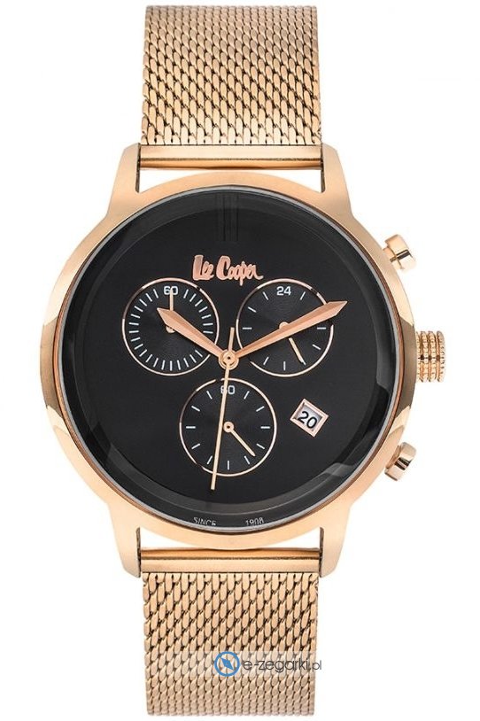 Zegarek męski LC06987.410 marki Lee Cooper to dobra pozycja dla osób ceniących sobie dbałość o szczegóły jak również bezawaryjne funkcjonowanie mechanizmów. Nieschematyczny wygląd czasomierza uzyskano m.in. poprzez cyferblat w kolorze różowo złotym. Zaprezentowana metodą analogową bieżąca godzina jest czytelna i prosta do sprawdzenia. Koperta szeroka jest na 43 mm - charakteryzuje się okrągłym kształtem.