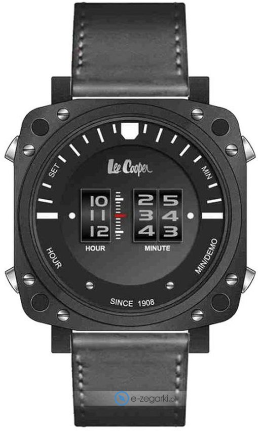 Model LC07002.651 marki Lee Cooper to stylowy zegarek naręczny męski, który wyposażono w ciekawe rozwiązania i funkcje. Atrakcyjną stylistykę czasomierza uzyskano z pomocą tarczy w kolorze czarnym. Zaprezentowana metodą analogową bieżąca godzina jest czytelna i prosta do odczytania. Koperta w odcieniach koloru czarnego szeroka jest na 44 mm.