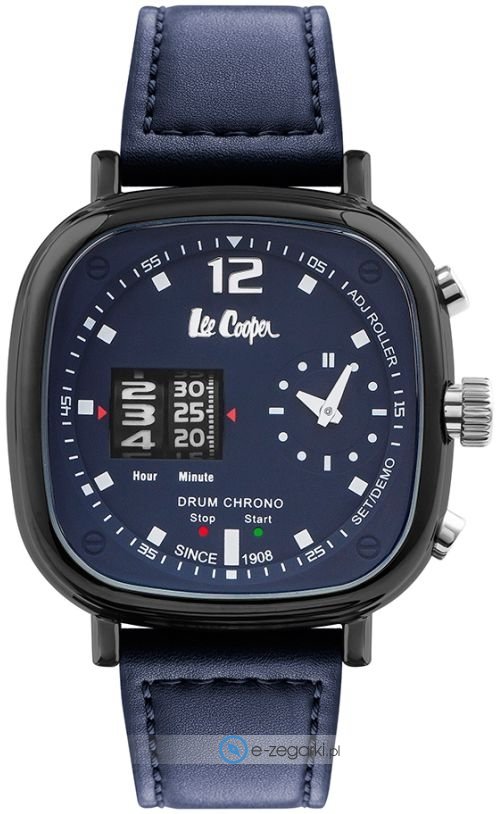Model LC07003.099 marki Lee Cooper to stylowy zegarek naręczny męski, który wyposażono w ciekawe rozwiązania oraz funkcje. Styl zapewnia wysokiej klasy tarcza w kolorze granatowym. Godzina przedstawiona jest w sposób analogowy co bez trudu pozwala ją odczytać. Koperta jest pokryta kolorem czarnym szeroka jest na 45 mm.