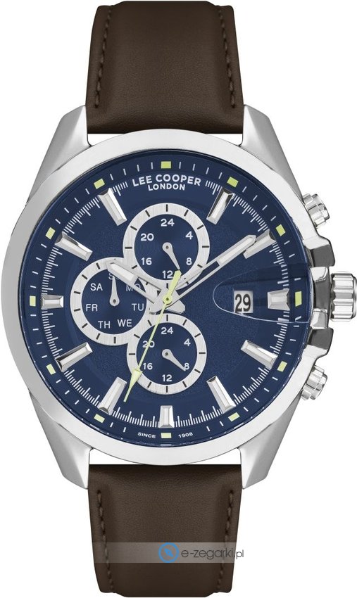 Lee Cooper to to brand założony w Londynie w 1908 roku. Jest najstarszą europejską marką zajmująca się produkcją popularnej odzieży jeansowej. W dzisiejszych czasach brand ten dostępny jest praktycznie na wszystkich kontynentach w przeszło 5000 punktach sprzedaży. Do kompletu oprócz odzieży brakowało tylko zegarków, stąd właśnie decyzja o powiększeniu asortymentu i produkcji czasomierzy Lee Cooper. Zegarki Lee Cooper tak jak reszta produktów marki charakteryzuje wysoka jakość wykonania w przystępnej cenie. Zegarki cechują się dopracowanymi detalami oraz precyzyjnym wykończeniem. Sprzedawane w naszym sklepie zegarki Lee Coooper pochodzą od oficjalnego polskiego dystyrbutora i objęte są dwuletnia. Dzięki temu masz pewność, że zakupiony czasomierz zawsze gdy zajdzie taka potrzeba będzie właściwie traktowany w ewentualnym procesie pogwarancyjnym lub gwarancyjnym.