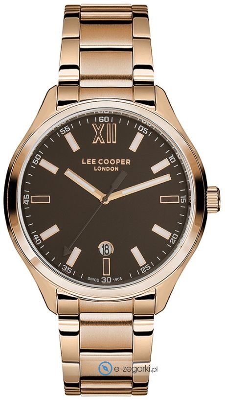 Lee Cooper to marka, która powstała w Londynie w 1908 roku. Jest najstarszym europejskim brandem zajmującym się wytwarzaniem popularnej odzieży jeansowej. Aktualnie brand ten dostępny jest praktycznie na wszystkich kontynentach w ponad 5000 punktach sprzedaży. Do kompletu oprócz odzieży brakowało tylko zegarków, stąd właśnie decyzja o rozszerzeniu asortymentu i produkcji zegarków Lee Cooper. Zegarki Lee Cooper tak jak reszta produktów marki oferują niezwykle wysoką jakość wykonania w przystępnej cenie. Zegarki cechują się dopracowanymi detalami oraz precyzyjnym wykończeniem. Sprzedawane w naszym sklepie zegarki Lee Coooper pochodzą od oficjalnego dystyrbutora i objęte są jego gwarancją. Dzięki temu masz pewność, że zakupiony zegarek zawsze gdy zajdzie taka konieczność będzie odpowiednio traktowany w ewentualnym procesie pogwarancyjnym lub gwarancyjnym.