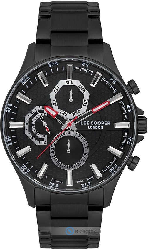 Zegarek męski LC07169.650 marki Lee Cooper to dobre połączenie funkcjonalności oraz ciekawego wzornictwa. Ciekawą stylistykę czasomierza osiągnięto z pomocą tarczy w kolorze czarnym. Zegarek ten pokazuje godzinę w formacie analogowym dzięki temu odczyt jest bardzo łatwy. Koperta została ozdobiona kolorem czarnym szeroka jest na 45 mm - cechuje się okrągłym kształtem.