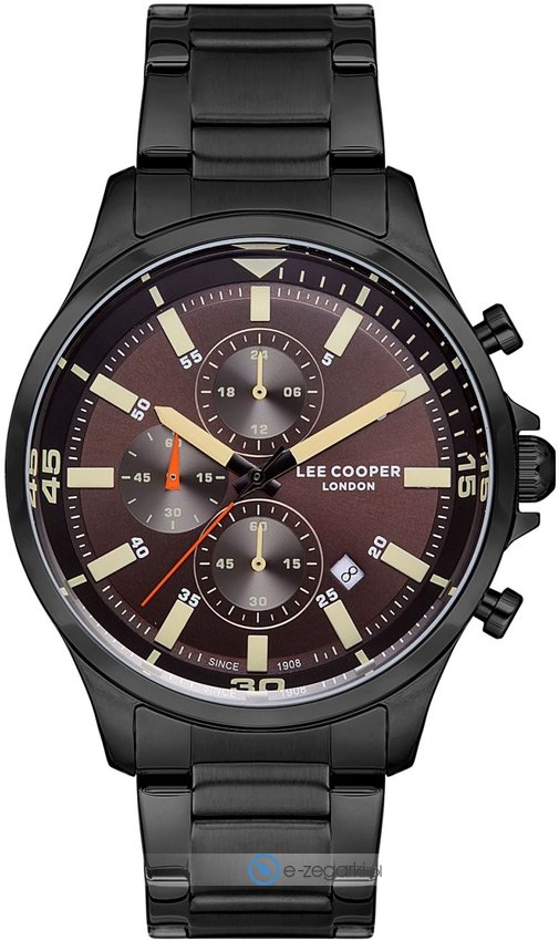 Model LC07179.640 marki Lee Cooper to stylowy zegarek naręczny męski, który wyposażono w pomysłowe rozwiązania oraz funkcje. Ciekawą budowę zegarka uzyskano dzięki tarczy w kolorze brązowym. Godzina pokazywana jest w sposób analogowy co intuicyjnie pozwala ją odczytać. Koperta w barwach koloru czarnego szeroka jest na 45 mm - ma okrągły kształt.