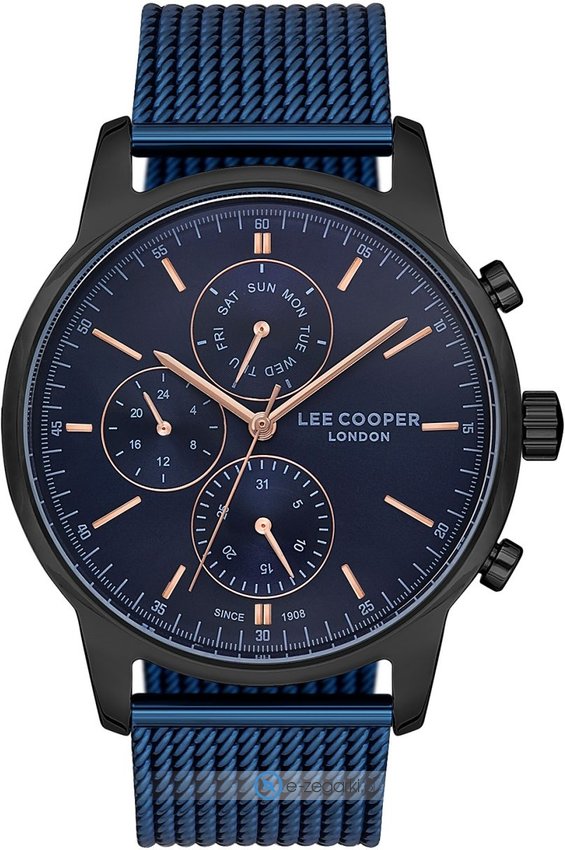 Zegarek męski LC07181.690 marki Lee Cooper to stylowe połączenie funkcjonalności i modnego wzornictwa. Niestereotypowy wygląd czasomierza osiągnięto m.in. poprzez cyferblat w kolorze granatowym. Godzina zaprezentowana jest w sposób analogowy co intuicyjnie pozwala ją odczytać. Koperta w barwach koloru czarnego szeroka jest na 44 mm - w kształcie okrągłym.