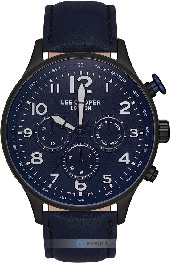 Zegarek męski LC07193.699 marki Lee Cooper to idealna pozycja dla ludzi ceniących sobie dbałość o detale jak również bezawaryjne zachowanie mechanizmów. Atrakcyjny wygląd zegarka osiągnięto m.in. poprzez tarczę w kolorze granatowym. Aktualna godzina przedstawiona jest w sposób analogowy co intuicyjnie pozwala ją odczytać. Koperta została ozdobiona kolorem czarnym szeroka jest na 47 mm - posiada okrągły kształt.