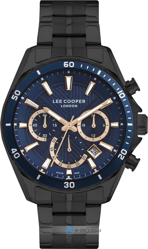 Męski zegarek Lee Cooper LC07256.090 to zegarek, który dzięki swemu wzornictwu zawsze będzie prezentował się dobrze. Niebanalny wygląd zegarka uzyskano również dzięki tarczy w kolorze granatowym. Zegarek ten prezentuje godzinę w formacie analogowym dzięki czemu odczyt jest bardzo łatwy. Koperta w barwach koloru czarnego szeroka jest na 44 mm - posiada okrągły kształt.