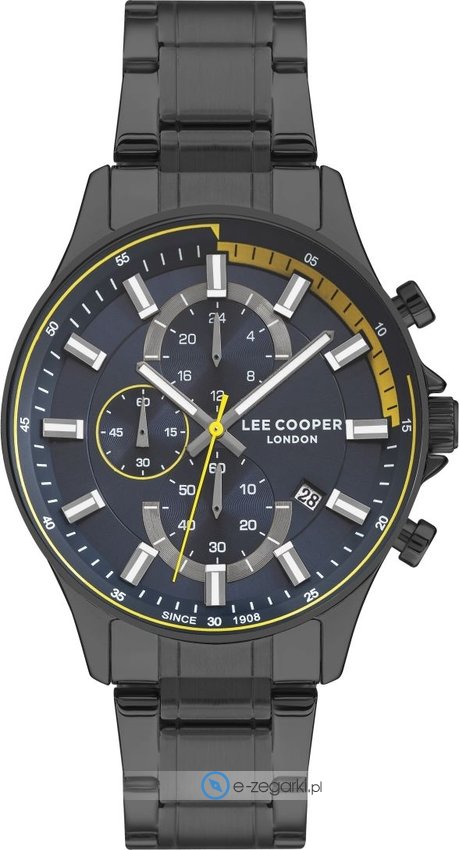 Zegarek męski LC07352.090 marki Lee Cooper to ciekawa propozycja dla osób ceniących sobie dbałość o szczegóły jak również bezawaryjne zachowanie mechanizmów. Niebanalny wygląd czasomierza osiągnięto m.in. poprzez cyferblat w kolorze czarnym. Aktualna godzina pokazywana jest w sposób analogowy co niezmiernie łatwo pozwala ją odczytać. Koperta w odcieniach koloru czarnego szeroka jest na 45 mm - w kształcie okrągłym.