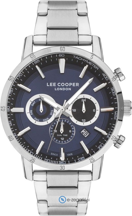 Model LC07357.390 marki Lee Cooper to gustowny zegarek naręczny męski, który wyposażono w ciekawe rozwiązania i funkcje. Wysokiej jakości tarczę zegarka ozdobiono granatowym kolorem. Aktualna godzina prezentowana jest w sposób analogowy co intuicyjnie pozwala ją odczytać. Koperta jest w kolorze srebrnym - cechuje się okrągłym kształtem.