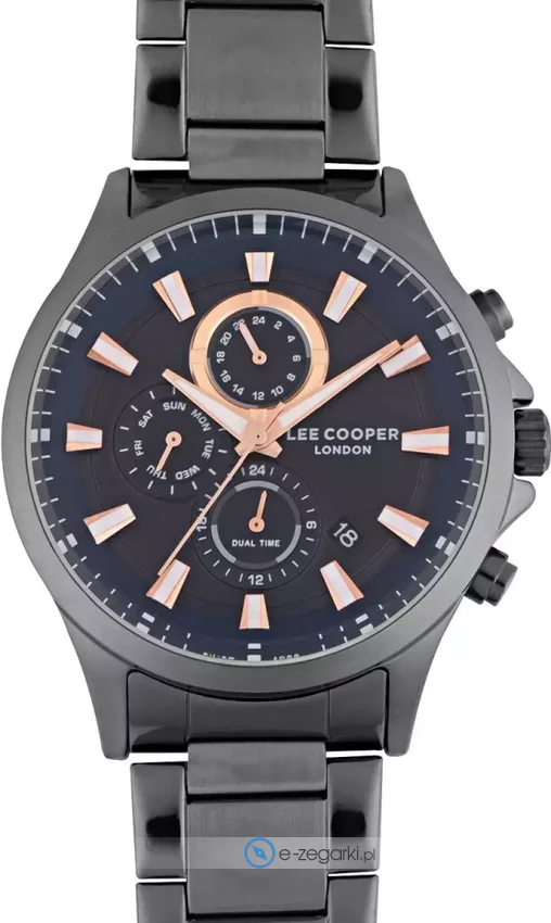 Lee Cooper to to brand założony w Londynie w 1908 roku. Jest najstarszą europejską marką zajmująca się wytwarzaniem używanej na codzień odzieży jeansowej. Obecnie brand ten można zobaczyć na wszystkich kontynentach w przeszło 5000 punktach sprzedaży. Aby być kompletną marką modową oczywiście nie mogło zabrankąć zegarków, stąd właśnie decyzja o rozszerzeniu asortymentu i produkcji zegarków Lee Cooper. Zegarki Lee Cooper tak jak reszta produktów marki charakteryzuje wysoka jakość wykonania w atrakcyjnej cenie. Zegarki cechują się dopracowanymi detalami oraz precyzyjnym wykończeniem. Sprzedawane w naszym sklepie zegarki Lee Coooper pochodzą od oficjalnego polskiego dystyrbutora i objęte są jego gwarancją. W ten sposób masz pewność, że zakupiony czasomierz zawsze gdy zajdzie taka konieczność będzie mógł być odpowiednio traktowany w ewentualnym procesie pogwarancyjnym lub gwarancyjnym.
