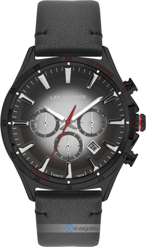 Męski zegarek Lee Cooper LC07376.651 to zegarek, który dzięki swemu wzornictwu zawsze będzie prezentował się dobrze. Wysokiej trwałości tarczę zegarka pokryto szarym kolorem. Zegarek ten prezentuje godzinę w formacie analogowym dzięki temu odczyt jest intuicyjny. Koperta jest w kolorze czarnym - cechuje się okrągłym kształtem.