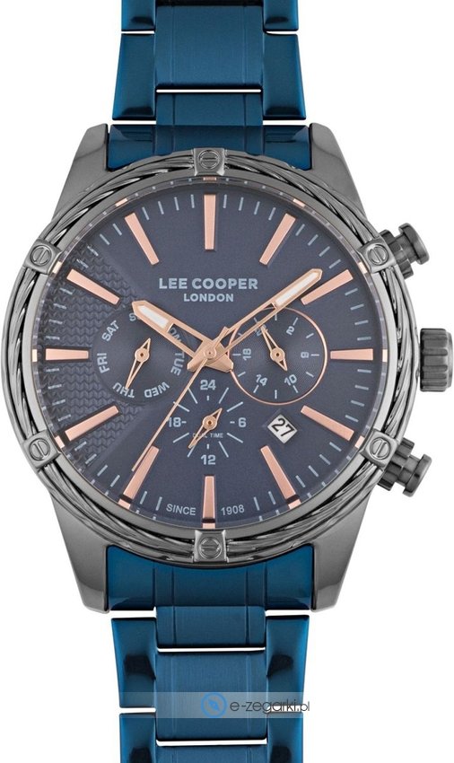 Lee Cooper to marka, która rozpoczęła swoją działalność w Londynie w 1908 roku. Jest najstarszym europejskim brandem zajmującym się produkcją popularnej odzieży jeansowej. Aktualnie brand ten można znaleźć praktycznie na wszystkich kontynentach w ponad 5000 sklepów. Do kompletu oprócz odzieży brakowało tylko zegarków, stąd właśnie decyzja o rozszerzeniu asortymentu i produkcji zegarków Lee Cooper. Zegarki Lee Cooper podobnie jak reszta produktów marki charakteryzuje wysoka jakość wykonania w atrakcyjnej cenie. Zegarki cechują się dopracowanymi detalami oraz precyzyjnym wykończeniem. Sprzedawane w naszym sklepie zegarki Lee Coooper pochodzą od oficjalnego dystyrbutora i objęte są dwuletnia. Dzięki temu masz pewność, że zakupiony czasomierz zawsze gdy zajdzie taka konieczność będzie mógł być odpowiednio traktowany w ewentualnym procesie gwarancyjnym lub pogwarancyjnym.