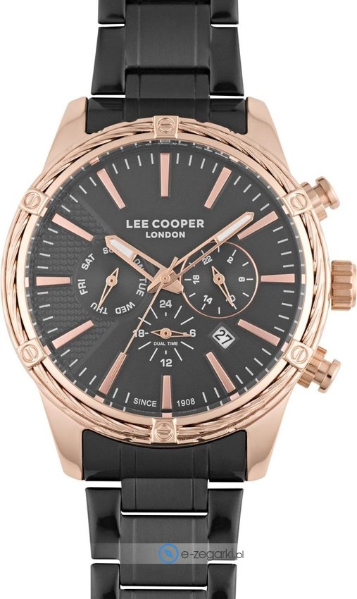 Lee Cooper to brand, który powstał w Londynie w 1908 roku. Jest najstarszą europejską marką zajmująca się produkcją używanej na codzień odzieży jeansowej. Obecnie brand ten dostępny jest praktycznie na wszystkich kontynentach w przeszło 5000 sklepów. Aby być kompletną marką modową oczywiście nie mogło zabrankąć zegarków, stąd właśnie decyzja o powiększeniu asortymentu i produkcji zegarków Lee Cooper. Zegarki Lee Cooper podobnie jak reszta produktów marki oferują niezwykle wysoką jakość wykonania w atrakcyjnej cenie. Zegarki cechują się dopracowanymi detalami oraz precyzyjnym wykończeniem. Sprzedawane w naszym sklepie zegarki Lee Coooper pochodzą od oficjalnego dystyrbutora i objęte są dwuletnia. Dzięki temu masz pewność, że zakupiony czasomierz zawsze gdy zajdzie taka potrzeba będzie mógł być odpowiednio traktowany w ewentualnym procesie gwarancyjnym lub pogwarancyjnym.