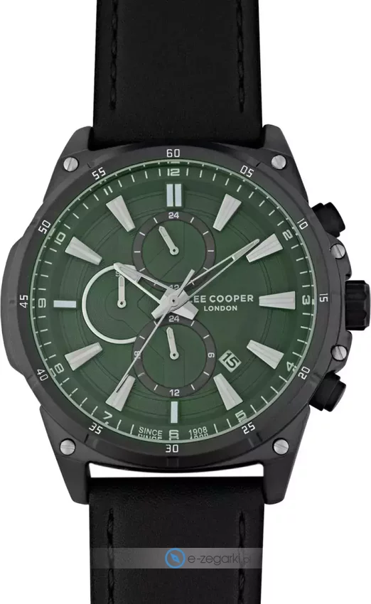 Zegarek męski LC07489.671 marki Lee Cooper to dobra propozycja dla ludzi ceniących sobie dbałość o detale oraz bezawaryjne zachowanie mechanizmów. Niestereotypowy wygląd czasomierza uzyskano również dzięki tarczy w kolorze zielonym. Zegarek ten pokazuje godzinę w formacie analogowym dzięki czemu odczyt jest bezproblemowy. Koperta jest ozdobiona kolorem czarnym szeroka jest na 46 mm - posiada okrągły kształt.