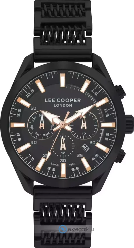 Lee Cooper to to brand założony w Londynie w 1908 roku. Jest najstarszą europejską marką zajmująca się produkcją popularnej odzieży jeansowej. W dzisiejszych czasach brand ten można znaleźć praktycznie na wszystkich kontynentach w przeszło 5000 sklepów. Aby być kompletną marką modową oczywiście nie mogło zabrankąć zegarków, stąd właśnie decyzja o rozszerzeniu asortymentu i produkcji zegarków Lee Cooper. Zegarki Lee Cooper podobnie jak reszta produktów marki oferują niezwykle wysoką jakość wykonania w atrakcyjnej cenie. Zegarki zawsze mają bardzo dobre wykończenie, a także dopracowane w szczegółach detale. Sprzedawane w naszym sklepie zegarki Lee Coooper pochodzą od oficjalnego dystyrbutora i objęte są jego gwarancją. Dzięki temu masz pewność, że zakupiony czasomierz zawsze gdy zajdzie taka konieczność będzie odpowiednio traktowany w ewentualnym procesie gwarancyjnym lub pogwarancyjnym.