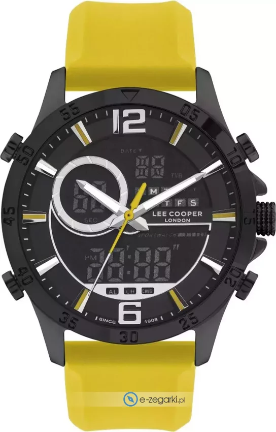 Męski zegarek Lee Cooper LC07559.657 to zegarek, który dzięki swemu wzornictwu zawsze będzie prezentował się dobrze. Wysokiej jakości tarczę zegarka pokryto czarnym kolorem. Zegarek ten prezentuje aktualny czas w formacie analogowo - cyfrowym dzięki temu odczyt jest intuicyjny. Koperta jest w kolorze czarnym szeroka jest na 46 mm - charakteryzuje się okrągłym kształtem.