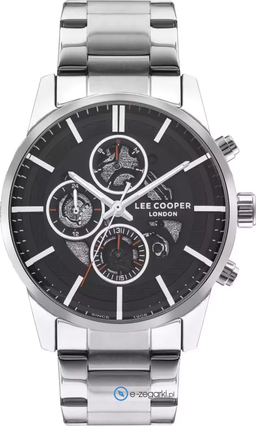 Zegarek męski LC07562.350 marki Lee Cooper to idealna propozycja dla osób ceniących sobie dbałość o szczegóły a także sprawne funkcjonowanie mechanizmów. Wysokiej trwałości cyferblat zegarka ozdobiono czarnym kolorem. Zegarek ten prezentuje godzinę w formacie analogowym dzięki czemu odczyt jest bezproblemowy. Koperta jest w kolorze stalowym szeroka jest na 46 mm - w kształcie okrągłym.