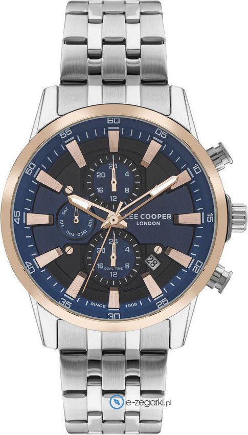 Zegarek męski LC07592.590 marki Lee Cooper to ciekawa propozycja dla ludzi ceniących sobie dbałość o detale jak również sprawne zachowanie mechanizmów. Charakteru dodaje wysokiej klasy cyferblat w kolorze granatowym. Zegarek ten pokazuje aktualny czas w formacie analogowym dzięki czemu odczyt jest intuicyjny. Koperta szeroka jest na 45 mm - cechuje się okrągłym kształtem.