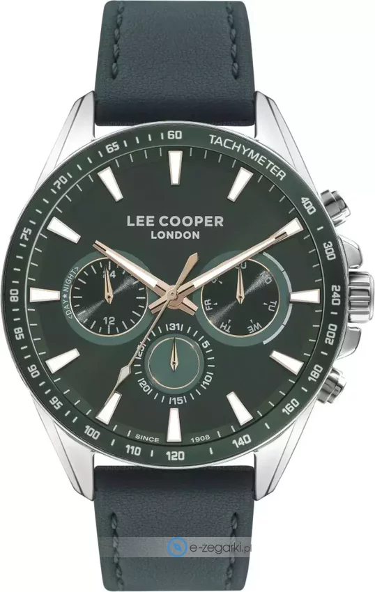 Zegarek męski LC07598.377 marki Lee Cooper to stylowe połączenie funkcjonalności i ciekawego designu. Ciekawy wygląd zegarka uzyskano także dzięki tarczy w kolorze zielonym. Zegarek ten prezentuje godzinę w formacie analogowym dzięki czemu odczyt jest intuicyjny. Koperta szeroka jest na 46 mm - w kształcie okrągłym.