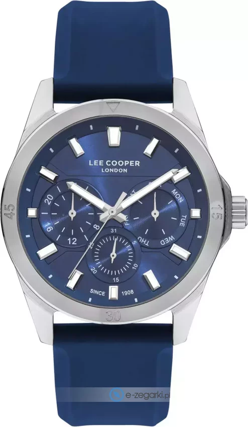 Męski zegarek Lee Cooper LC07626.399 to zegarek, który dzięki swemu wzornictwu zawsze będzie prezentował się dobrze. Charakteru dodaje wysokiej klasy tarcza w kolorze granatowym. Zegarek ten prezentuje aktualny czas w formacie analogowym dzięki temu odczyt jest bardzo łatwy. Koperta jest w kolorze stalowym szeroka jest na 46 mm - w kształcie okrągłym.