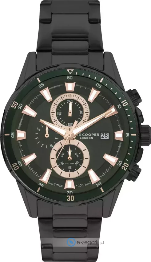 Męski zegarek Lee Cooper LC07627.070 to zegarek, który dzięki swemu wzornictwu zawsze będzie prezentował się dobrze. Tarcza zegarka jest w kolorze zielonym. Godzina pokazywana jest w sposób analogowy co intuicyjnie pozwala ją odczytać. Koperta szeroka jest na 46 mm - posiada okrągły kształt.