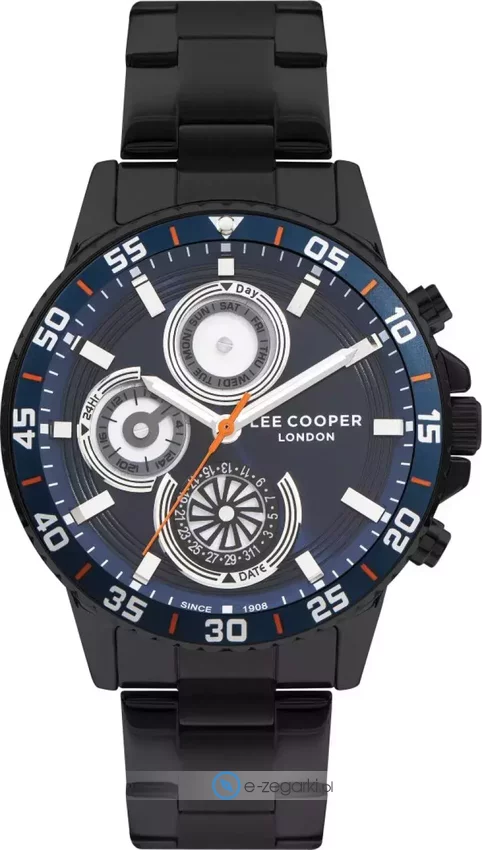 Męski zegarek Lee Cooper LC07636.690 to zegarek, który dzięki swemu wzornictwu zawsze będzie prezentował się dobrze. Atrakcyjny wygląd czasomierza uzyskano również dzięki tarczy w kolorze granatowym. Zaprezentowana metodą analogową aktualna godzina jest czytelna i łatwa do sprawdzenia. Koperta jest pokryta kolorem czarnym szeroka jest na 45 mm - w kształcie okrągłym.
