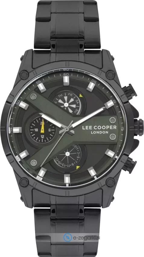 Zegarek męski LC07637.670 marki Lee Cooper to stylowe połączenie funkcjonalności a także ciekawego designu. Niestereotypowy wygląd czasomierza osiągnięto również dzięki tarczy w kolorze zielonym. Pokazana metodą analogową aktualna godzina jest czytelna i prosta do odczytania. Koperta jest w kolorze czarnym szeroka jest na 46 mm - w kształcie okrągłym.