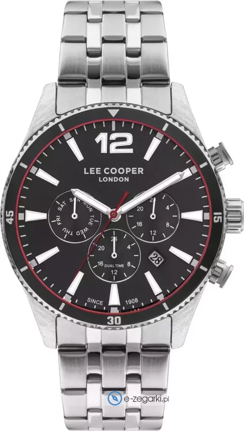 Lee Cooper to marka, która rozpoczęła swoją działalność w Londynie w 1908 roku. Jest najstarszym europejskim brandem zajmującym się produkcją popularnej odzieży jeansowej. Dzisiaj brand ten można znaleźć praktycznie na wszystkich kontynentach w przeszło 5000 punktach sprzedaży. Aby być kompletną marką modową oczywiście nie mogło zabrankąć zegarków, stąd właśnie decyzja o rozszerzeniu asortymentu i produkcji zegarków Lee Cooper. Zegarki Lee Cooper podobnie jak reszta produktów marki oferują niezwykle wysoką jakość wykonania w atrakcyjnej cenie. Zegarki zawsze mają bardzo dobre wykończenie, a także dopracowane w szczegółach detale. Sprzedawane w naszym sklepie zegarki Lee Coooper pochodzą od oficjalnego polskiego dystyrbutora i objęte są dwuletnia. Dzięki temu masz pewność, że zakupiony zegarek zawsze gdy zajdzie taka potrzeba będzie odpowiednio traktowany w ewentualnym procesie gwarancyjnym lub pogwarancyjnym.