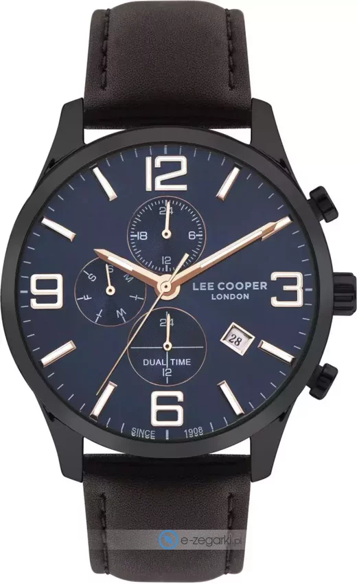 Model LC07713.692 marki Lee Cooper to stylowy zegarek naręczny męski, który wyposażono w ciekawe rozwiązania oraz funkcje. Charakterystyczny wygląd zegarka osiągnięto również dzięki tarczy w kolorze granatowym. Pokazana metodą analogową aktualna godzina jest czytelna i łatwa do odczytania. Koperta jest ozdobiona kolorem czarnym szeroka jest na 45 mm - w kształcie okrągłym.