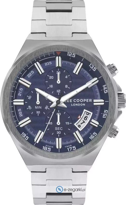 Model LC07717.390 marki Lee Cooper to elegancki zegarek naręczny męski, który posiada ciekawe rozwiązania oraz funkcje. Cyferblat zegarka jest w kolorze granatowym. Pokazana metodą analogową bieżąca godzina jest czytelna i łatwa do sprawdzenia. Koperta w barwach koloru stalowego szeroka jest na 45 mm - w kształcie okrągłym.