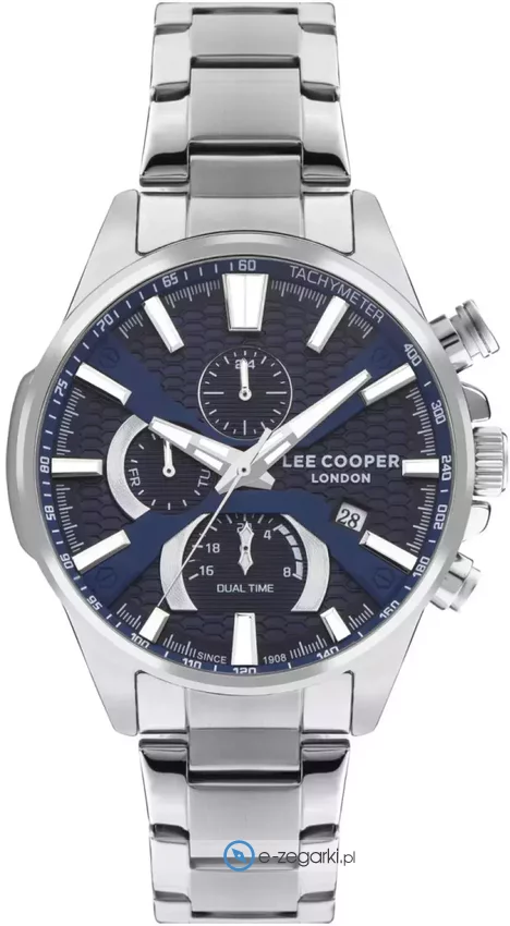 Zegarek męski LC07801.390 marki Lee Cooper to ciekawa propozycja dla ludzi ceniących sobie dbałość o szczegóły jak również sprawne funkcjonowanie mechanizmów. Tarcza zegarka jest w kolorze granatowym. Aktualna godzina pokazywana jest w sposób analogowy co bez trudu pozwala ją odczytać. Koperta jest w kolorze stalowym szeroka jest na 46 mm - posiada okrągły kształt.