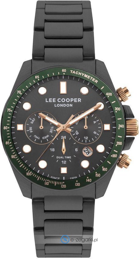 Model LC07829.060 marki Lee Cooper to elegancki zegarek naręczny męski, który wyposażono w pomysłowe rozwiązania oraz funkcje. Niestereotypowy wygląd czasomierza uzyskano również dzięki tarczy w kolorze szarym. Pokazana metodą analogową aktualna godzina jest czytelna i szybka do sprawdzenia. Koperta jest w kolorze stalowym szeroka jest na 44 mm - w kształcie okrągłym.